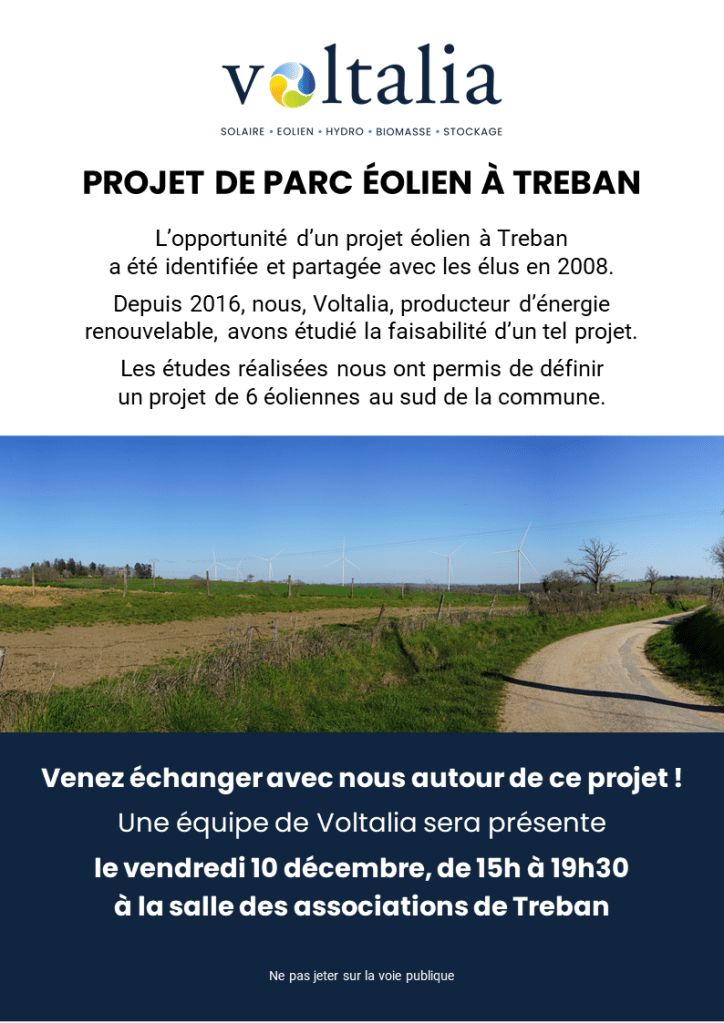 L’opportunité d’un projet éolien à Treban a été identifiée par la société Maïa Eolis et partagée avec les élus en 2008.